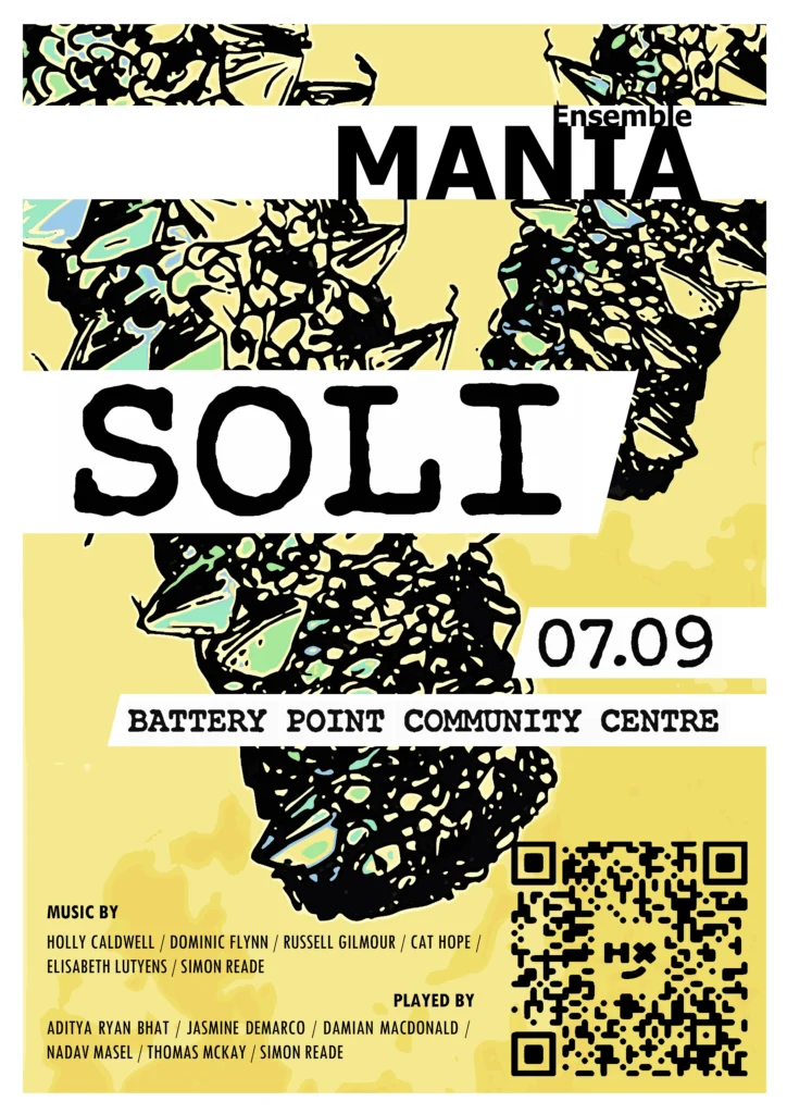 Celebrating five years of operation, Ensemble Mania presents a program of unconventional duos from some of our favourite composers in and outside Tasmania, including premieres from Russell Gilmour, Simon Reade, and Holly Caldwell. Opening each half of the concert will be solo improvisations from bassist Nadav Masel and percussionist Aditya Ryan Bhat.